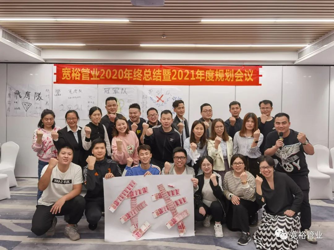 寬裕管業三天兩夜的2020年度總結暨2021年度規劃會議圓滿結束!感謝來自運營中心、銷售部、人力行政部、采購部、倉儲部、客服部等所有中高管的積極投入和全力支持,感謝我們的策劃及會務工作人員,感謝我們的合力共創!征途慢慢,唯有熱愛終抵歲月漫長!加油,寬裕人!奔跑吧,寬裕人!