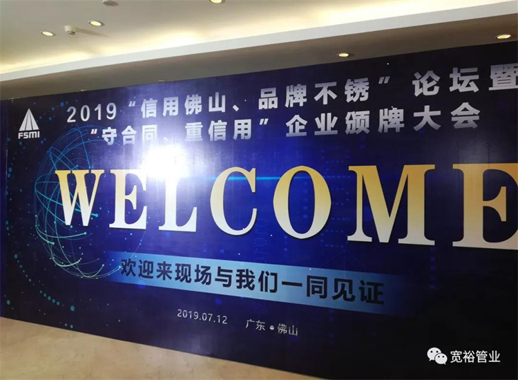 2019年7月12日,雨后天晴,佛山市寬裕不銹鋼有限公司應邀參加佛山市金屬材料行業協會主辦的2019“信用佛山、品牌不銹”論壇暨“守合同、重信用”企業頒牌大會在禪城希爾頓酒店隆重召開。