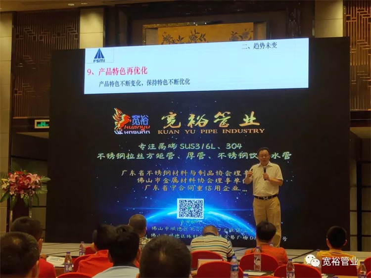 佛山市金屬材料協會執行會長李強充分表揚并肯定寬裕不銹鋼特色不銹鋼機械構造管,厚管,不銹鋼飲用水管等產品特色和服務。